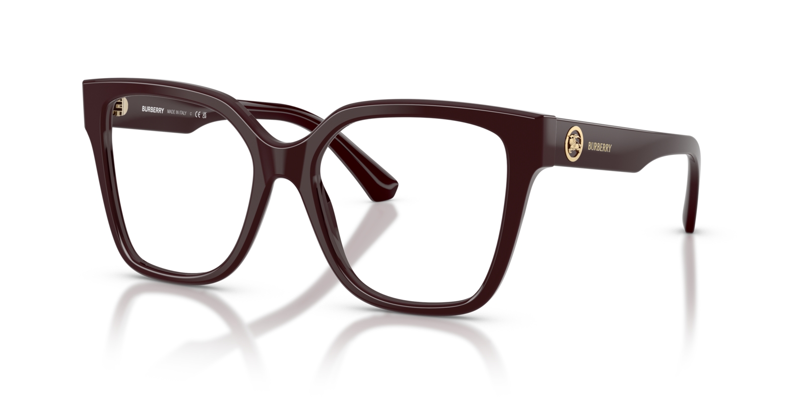 Crafted from premium acetate with a full-rim square front and sleek temples featuring Burberry’s iconic detailing, these frames deliver both modern elegance and lasting performance.