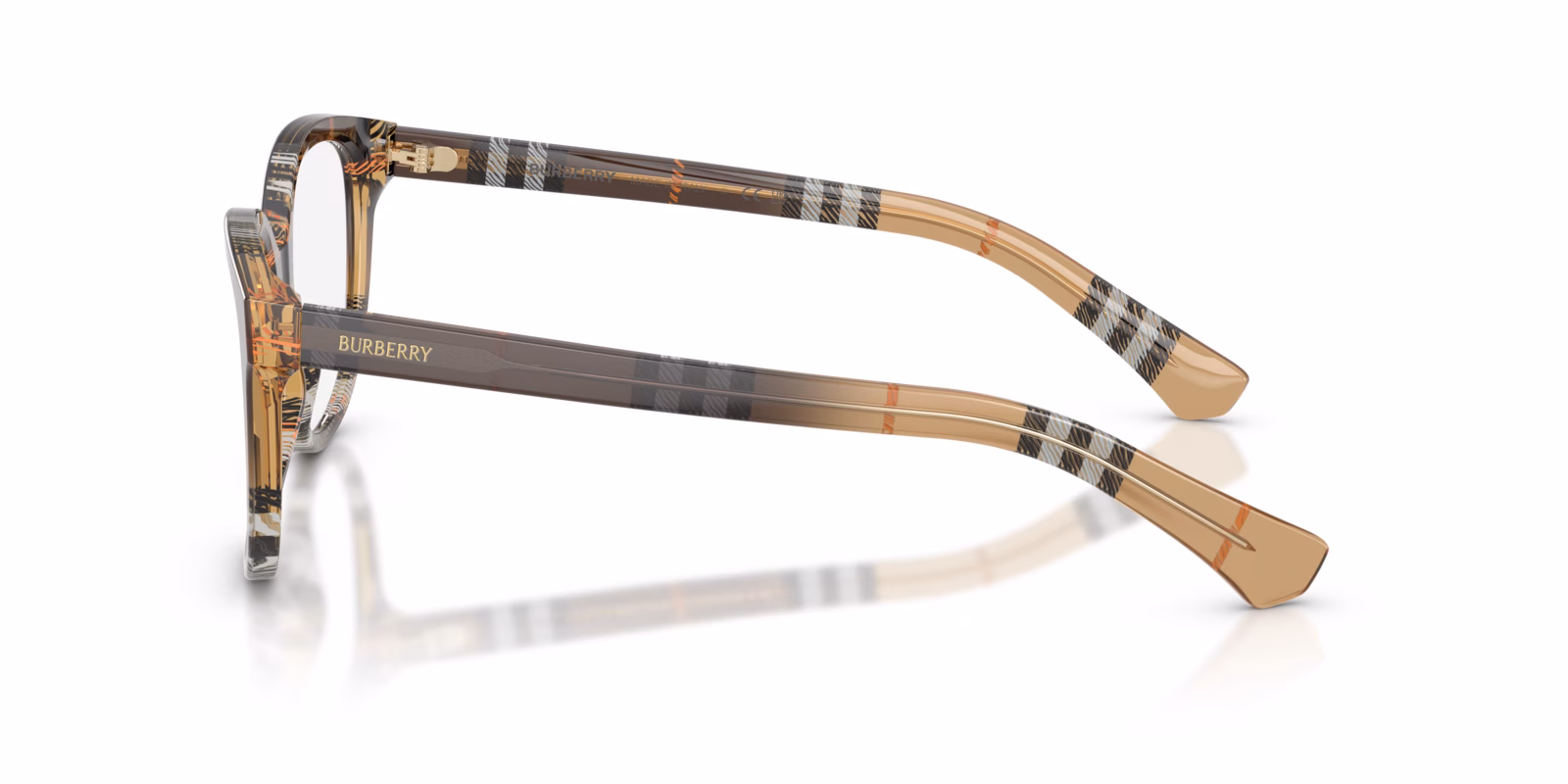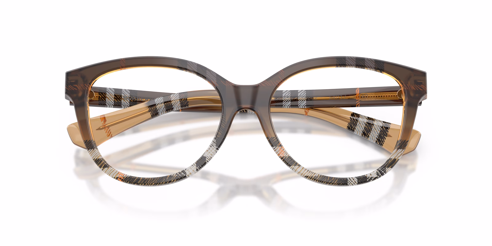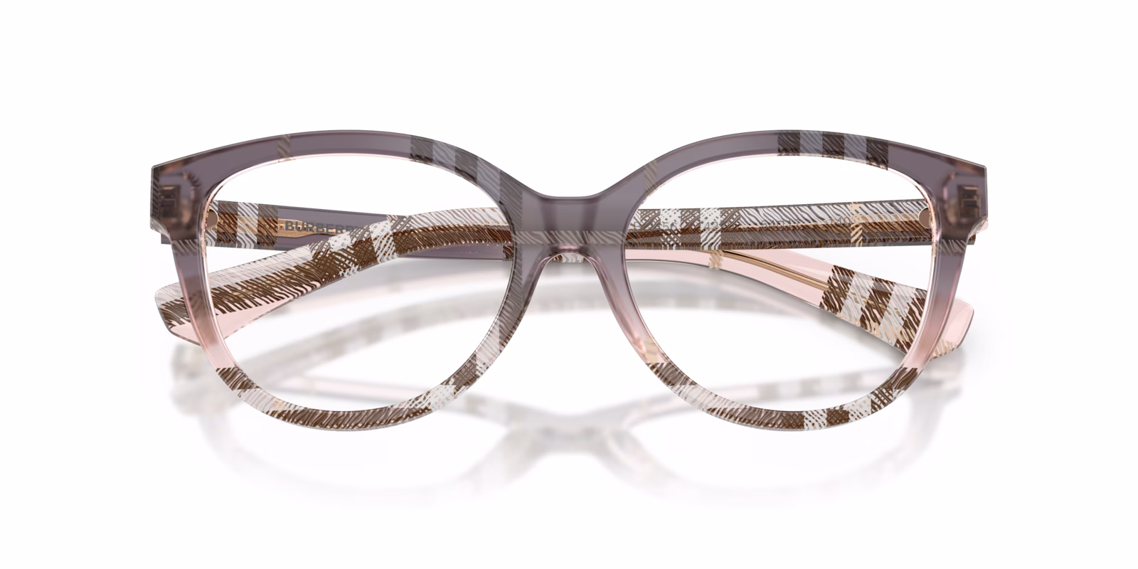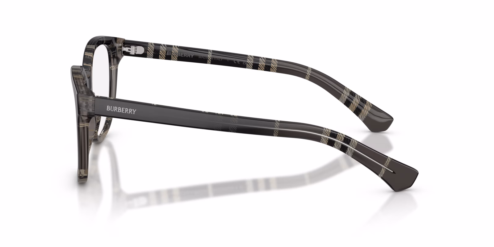 These full-rim eyeglasses are designed with spring hinges, allowing for a flexible fit that adapts to your face for added comfort. The iconic Burberry check pattern adds a touch of luxury and distinction to the overall design, making them a standout accessory.