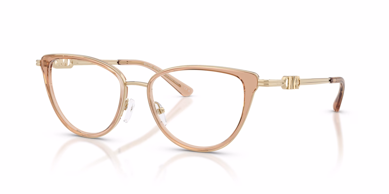 The Michael Kors MK3103 eyeglasses feature a chic cat-eye shape that adds a touch of elegance to any look. Crafted from a combination of metal and plastic, these frames offer durability without compromising on style. The full rim design ensures a secure fit, making them perfect for everyday wear.