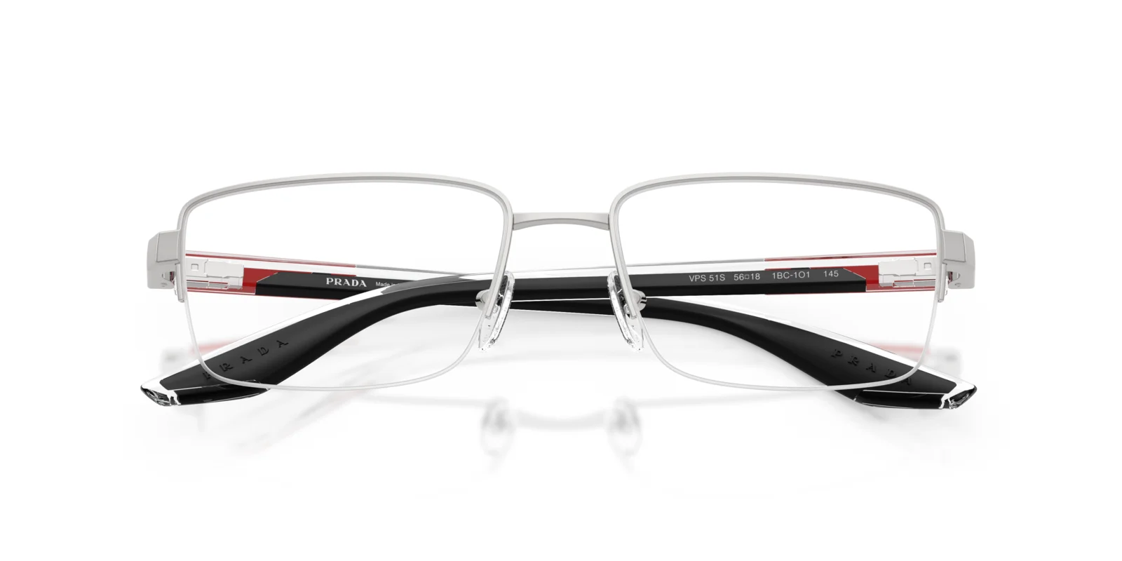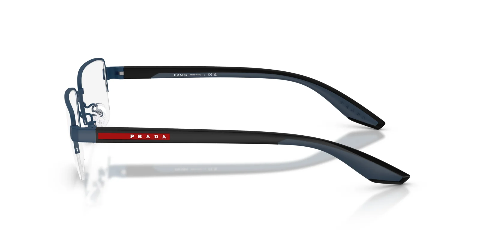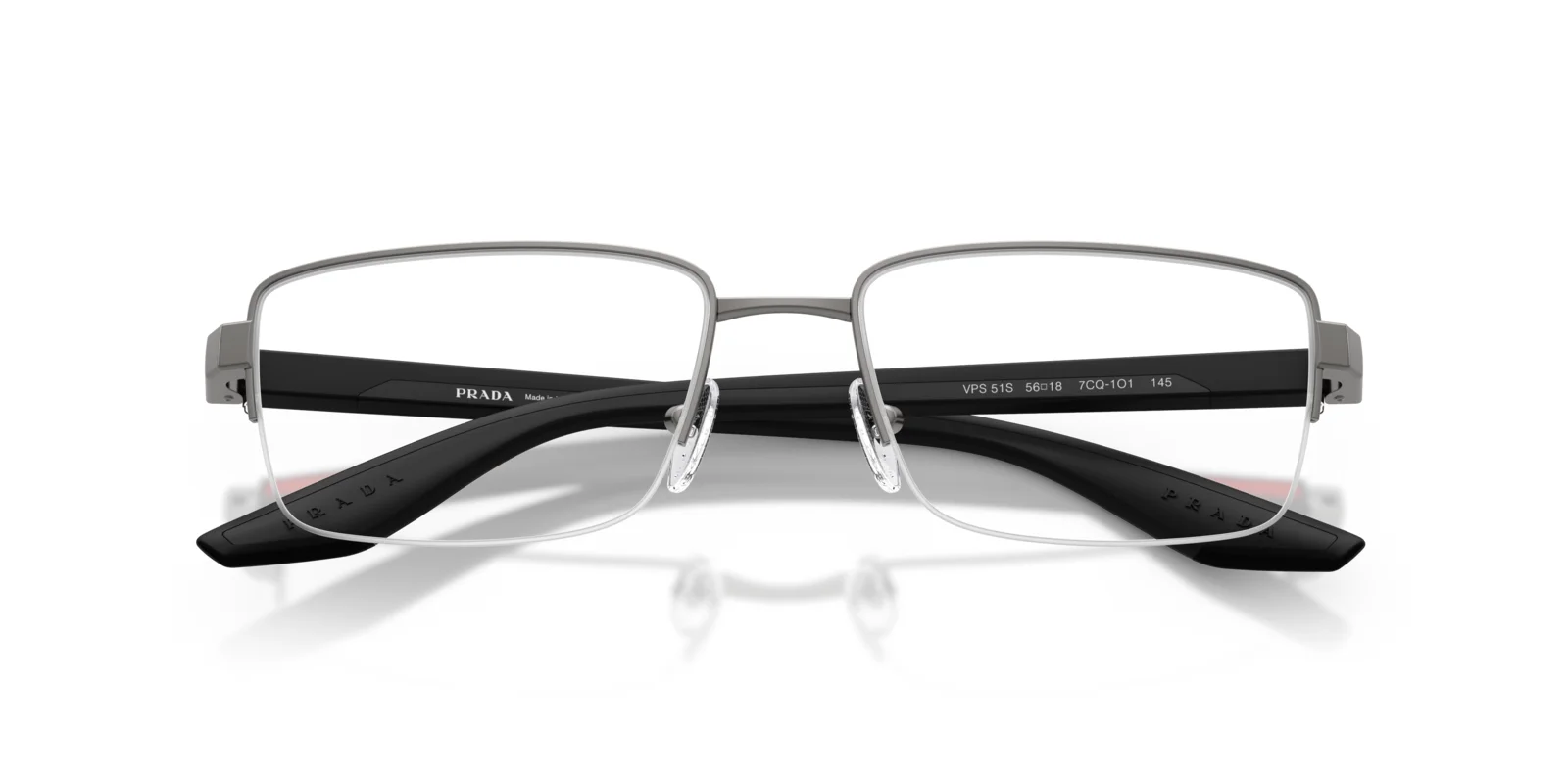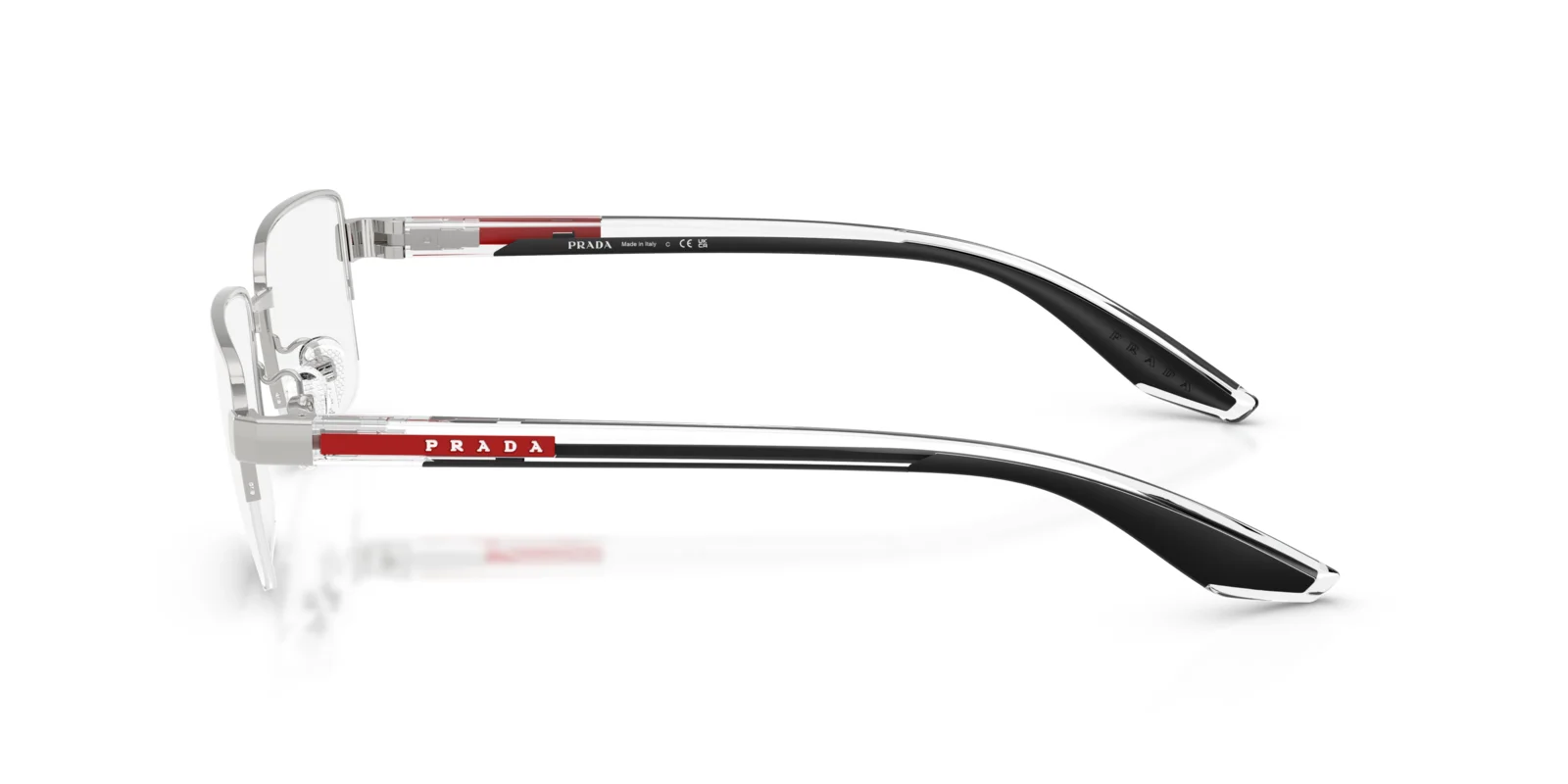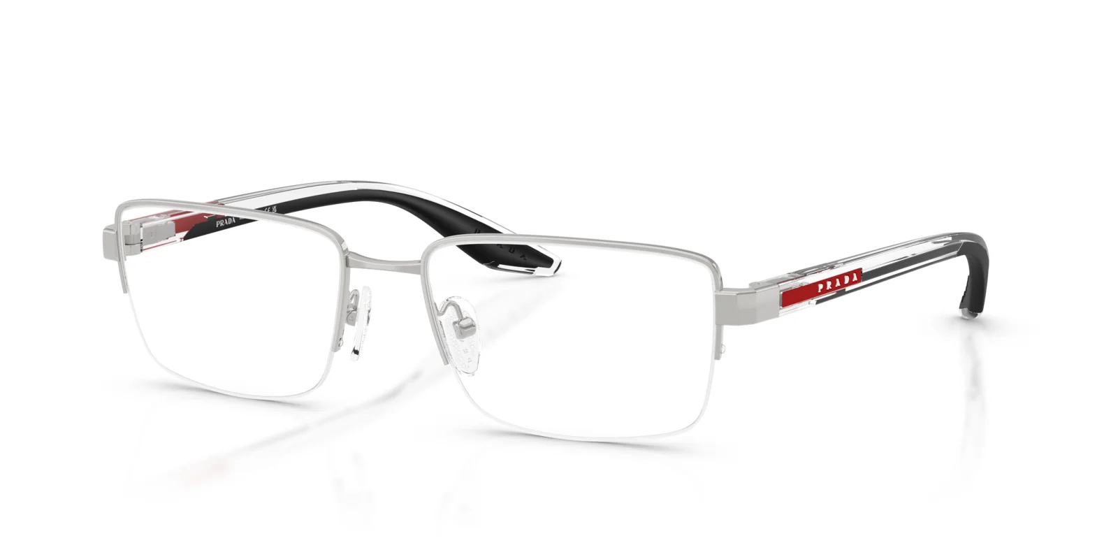 This optical design reflects the clean lines and ease at the core of Prada Linea Rossa. The semi-rimless metal front has a classic rectangular shape and pairs effortlessly with the injected temples that ensure comfort and wearability.