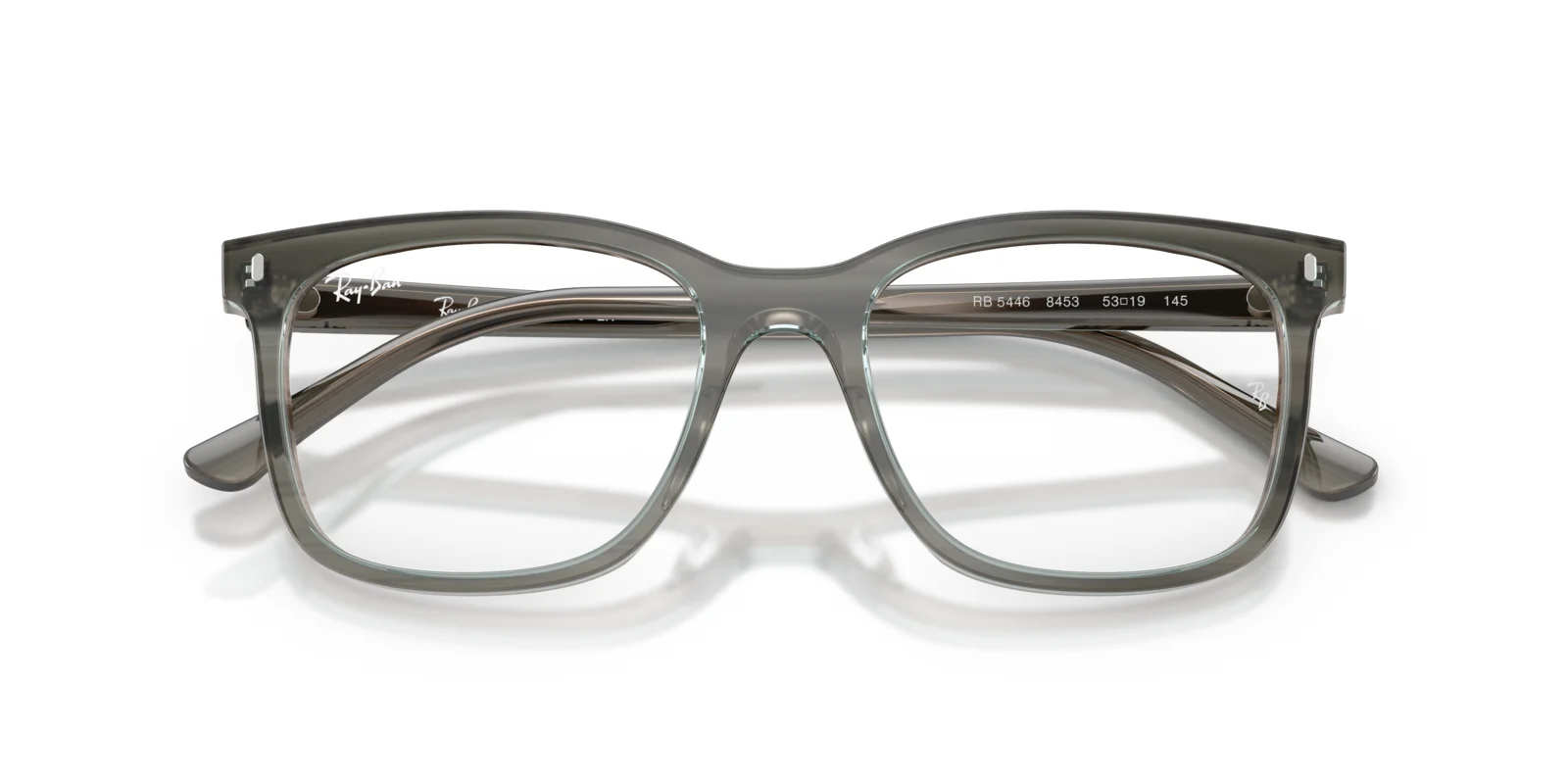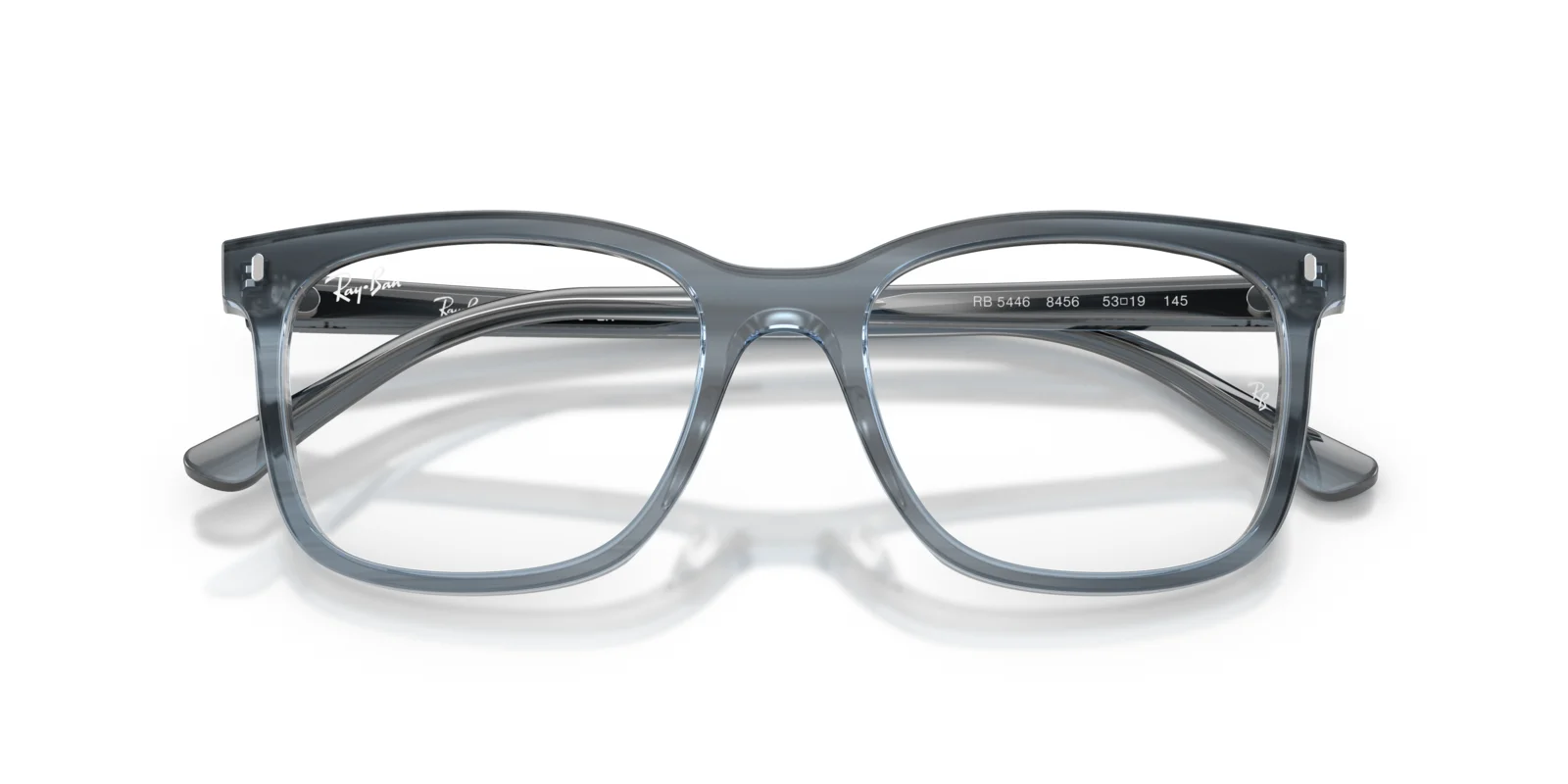 The Ray-Ban RX5446 eyeglasses are available in two sizes: 51-19-145 B 41 and 53-19-145 B 43, ensuring a comfortable fit for different face shapes.
